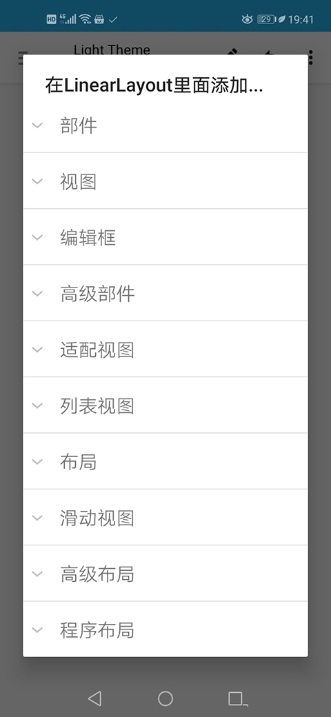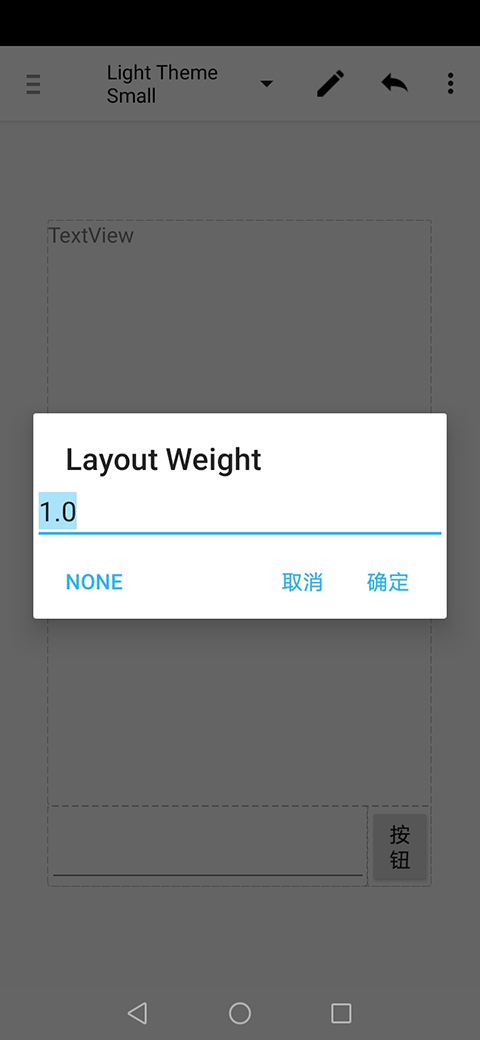 注意到下面的那个线性布局的高度其实就是输入框或者按钮的高度,不需要很大。然后屏幕剩下的高度就完全由上面的那个线性布局来填满。为了实现这一个操作,我们采用如下的办法: