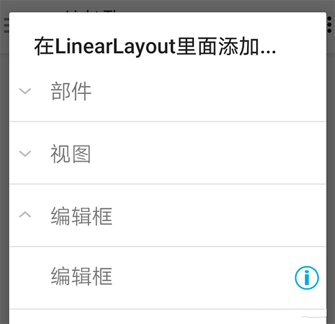 13、在编辑框一项里点击编辑框,即可在下面的线性布局里面添加一个编辑框。