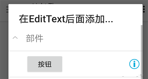 14、然后我们点击编辑框(也就是下图中有一条黑色实线的那个矩形小框),选择后面添加,在部件一项里面选择按钮。