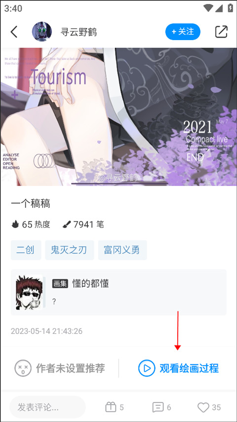 5、看到喜欢的点击进去还能在下方观看绘画过程;