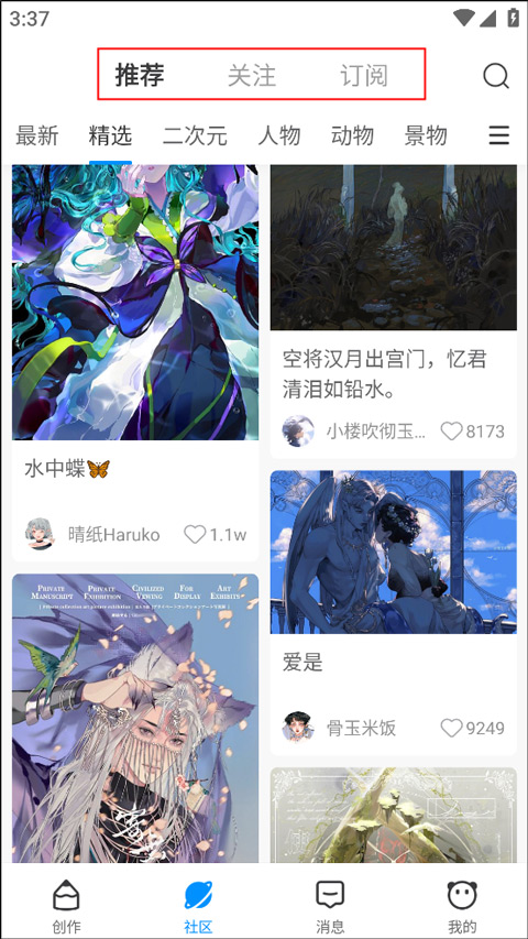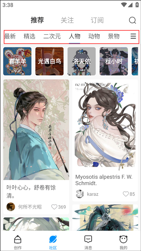 熊猫绘画社区版app是一款十分实用的绘画软件,强大的绘画功能,高级智能的在线创作,让你轻松绘画出你想要的各种效果。熊猫绘画里多了一个社区的功能,在这里用户们不仅可以自行根据自己的灵感来随意创作,来能发表自己的作品到社区广场中与大触一起胶料创作共同进步,当然你也可以在社区中看到各种类型作品,并系统为了让大家可以快速的看到自己感兴趣的,还将社区详细的划分为了二次元、人物、动物、景物、静物、创意、漫画、动画等多个专区,从而即可更好的找到同好小伙伴一起进行交流。