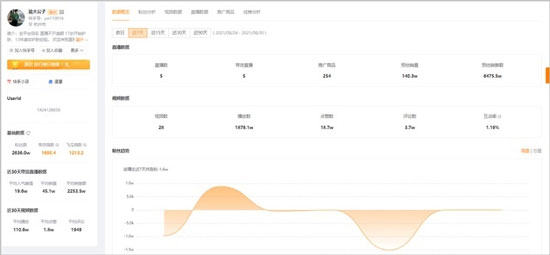 5、在【播主详情】中可以对播主的粉丝、视频、直播、推广商品及挂榜数据进行详细的分析。
