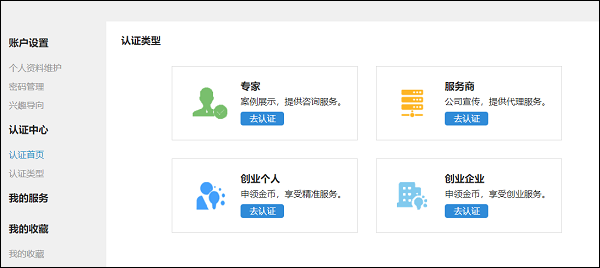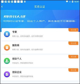 4、在这里,用户可以通过认证来免费领取创业券,获得一定资金;