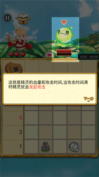 6、游戏上方是精灵的血量和攻击时间,当攻击时间满时精灵就会发起攻击;