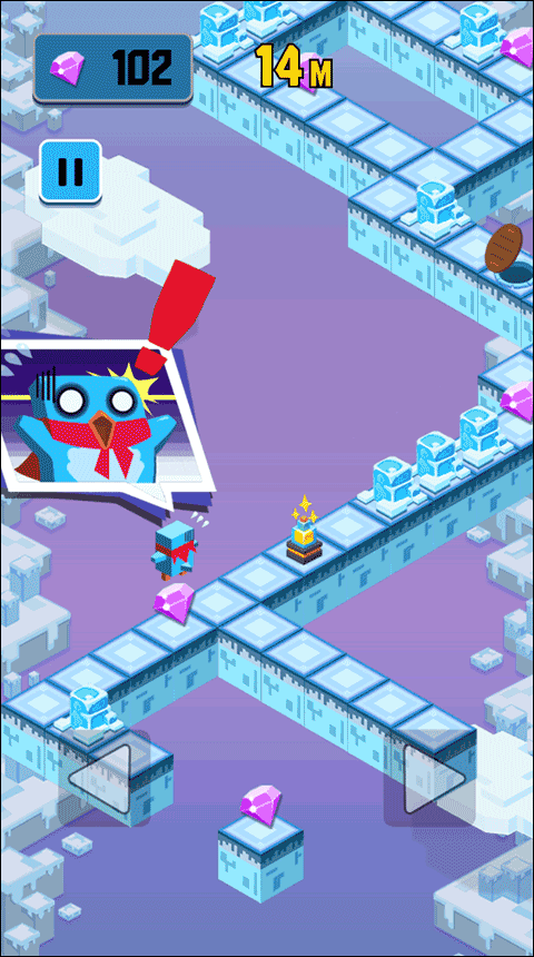 3、因为游戏不存在边界的概念,所以很多时候因为后面的冰块会不断融化,所以玩家一定要在紧张的情况下想好每一步的计划,不然就会导致企鹅掉落下去;