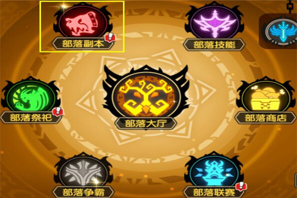 1、部落副本位于部落大厅左上角。