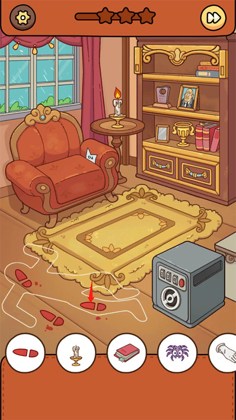 1、将柜子上的喷雾对着人形图案喷赛就能找到脚印。