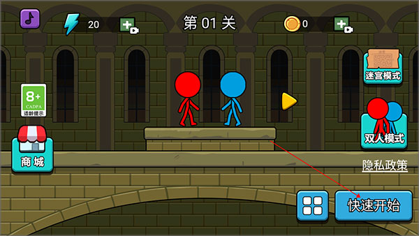 1、下载安装好双人迷宫冰与火手机版,进入游戏点击开始。