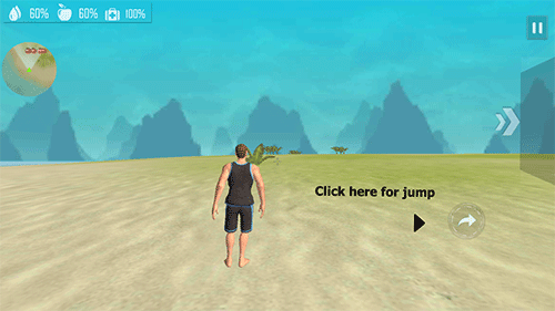 2、上岛之后,点击左右两侧对男人进行移动,先给它补充一点体力,再根据地图上食物的位置,去荒岛上采摘椰野果。