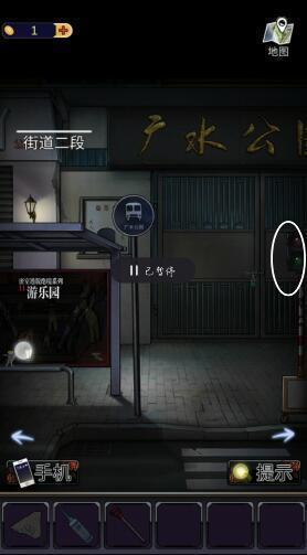 2、来到街道二段的广水公园门口,点击左下角和右边的位置,获得【人偶】和【纸条碎片】。