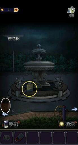 20、回到喷泉,点击喷泉处的东西,得到【扁平石头】。