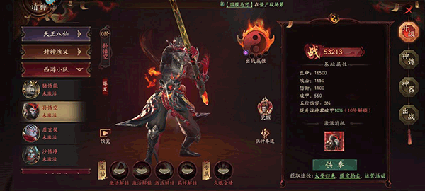 在封神演义中我们可以请到火神祝融、黑水共工、西王母以及兵主蚩尤,这4位提供的变身能力也各不相同。
