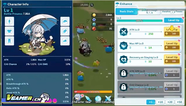 2、将任务进行到一定程度时,可对武器和角色进行升级。