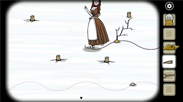 4,完成妹妹滑冰的谜题后,点击右上那一大块没有被破坏的冰,那只大鱼就会出来,洞穴里面也有它。