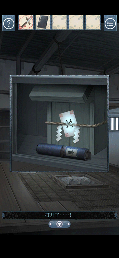 剧情ing,来到拿衣服的房间,有一个符咒忽然飘下来,捡起来以后想要放回去,发现身高不够,拿起旁边的梯子,把梯子放在地上,一下就长高了,放好符咒以后拿到碗,开始化缘路