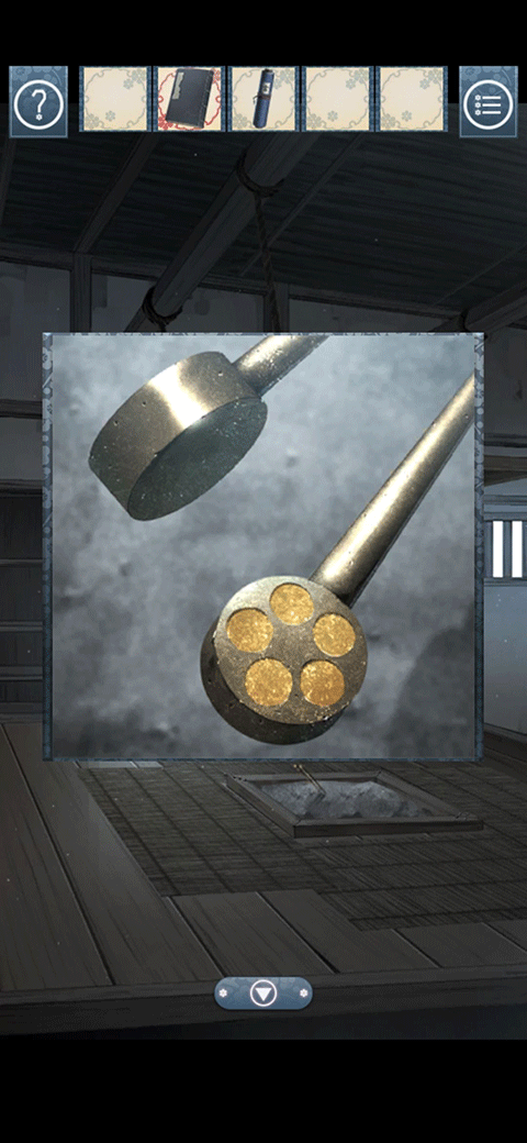 剧情ing,终于换视角了,这次是男主要努力了,首先无情的拿走山神的刀和左边柜子上的书,然后根据门上的线索和中间台子的线索得到五位数密码(用在哪里我忘了截图,好像是一个柜子),从门上出口走到中间,就是从左上到左下到右下到右上到中间,根据中间台子四角以及中间的数字提示,得到密码,三一四二五,打开柜子