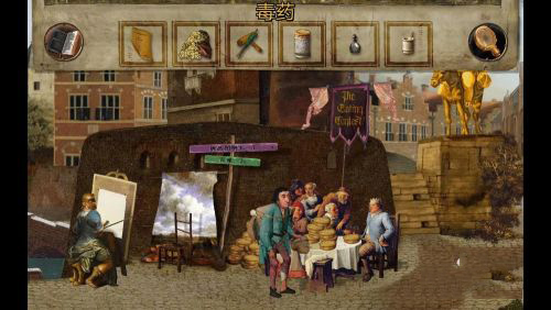 11、和画师旁边的馅饼冠军对话,比赛,输掉,在对话,让他扭头看身后,把毒药撒馅饼上,再一次他被毒死了,得到愤怒,