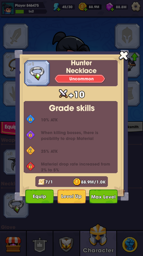 给攻击力加10%,分级技能,给力增10%,在杀死老板的时候,有可能会掉落Materia。当力为25%时,落料率由2%提高至5%。