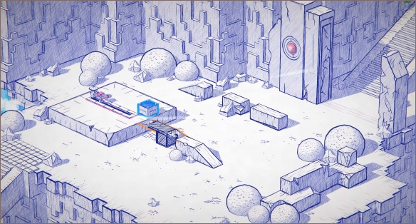 除了常规的绘制立方体以及挪动物品以外,每个区域还都有自己独特的解谜道具,例如沼泽中可以使用风力强劲的吹风机,在荒原中可以使用火源烧掉荆棘或是引导宝石柱前往指定位置。