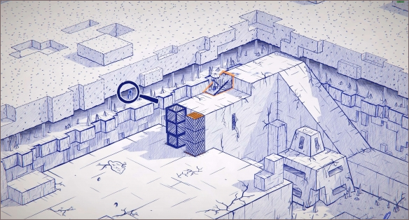 在每个场景中游戏都会将谜题设置好,玩家要做的是开动脑筋寻找解开谜题的正确方法,或是挪动箱子,或是拉动操控杆,其中最具特色的,还是控制无名英雄拿起钢笔,选中场景中可以绘制的物品并将它们放置到合适的位置来触发机关,开辟出一条通往下一场景的道路。