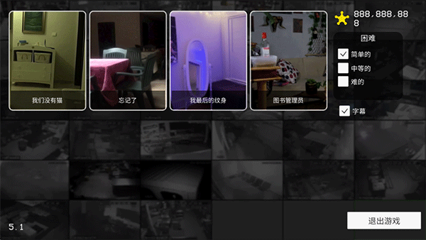 1、进到游戏内,可以看到有三个任务剧情,分别为我们没有猫、忘记了、我最后的纹身、图书管理员,选好后再选一个游戏难度。