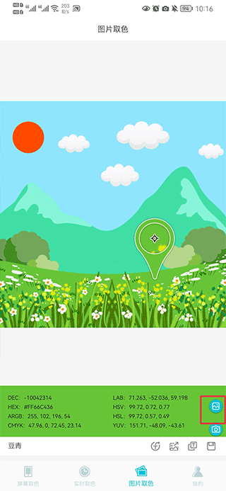 四、图片取色:点击界面中的图片图标上传你要取色的图片