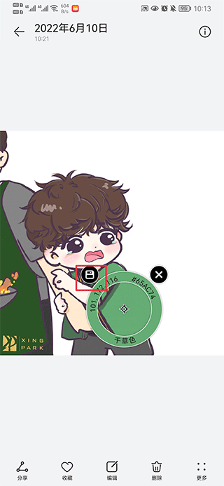五、上传后,将取色图标箭头对着颜色取色后,点击右下角储存颜色即可