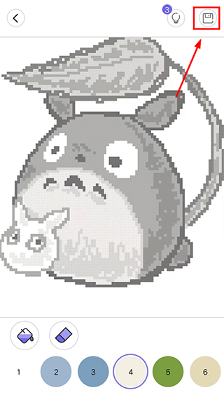 4、根据图片上的色块的数字,选择下方的颜色进行填色;
