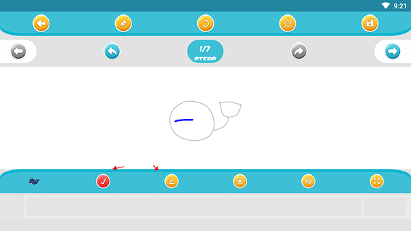 Artset4的操作流程也很清晰:进入应用后选择绘画作品,不知道怎么画还可以点击右上角的帮助按钮,里面有画笔和颜色选择等工具。软件还支持保存和分享功能,用户可以随时查看自己的作品并进行创作。