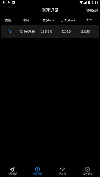 4、测速记录,实时记录每一次的测量网速的具体信息;
