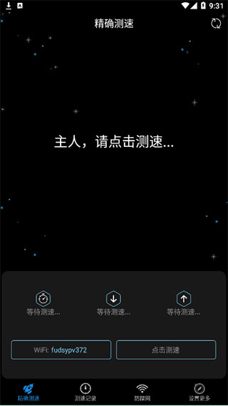 2、点击首页右下方的“点击测速”,即可对你所连接的网络进行测速。