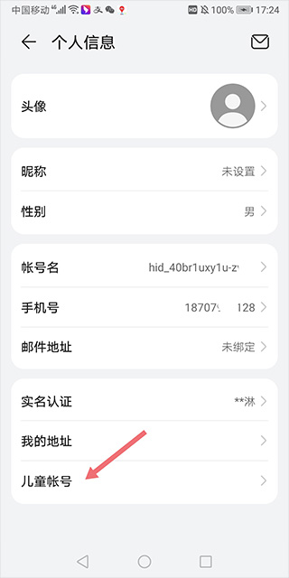 2、在打开的新页面中点击【儿童账号】