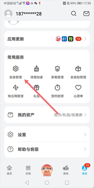 进入app【我的】页面中点击【安装管理】