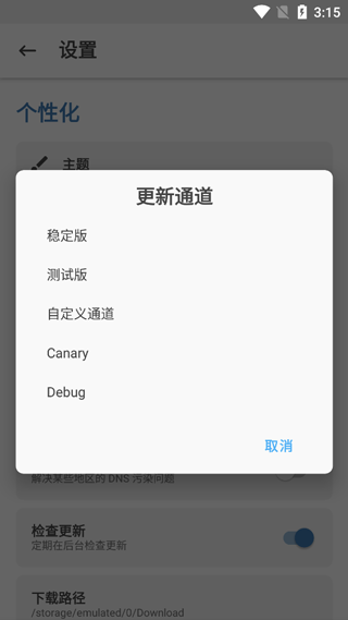 面具版本共分为两大类,也就是官方(也可以说是原版)面具和第三方面具。其中官方面具(原版面具)又根据不同的更新通道,分为稳定版、测试版、金丝雀(Canary)版、调试(Debug)版这四种,这个从应用中更新通道下可以看到