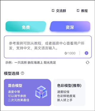 AI绘画平台也在操作界面提供了很多专业提示——【风格模型+高级设置】,对于刚接触 AI 艺术创作的用户可以先从平台指引的开始(请大胆组合它们,注意:平台仅仅是罗列了一些主流用词和风格,用户完全可以根据自己的认知大胆在文本描述框中写下自己喜欢的图画内容和各种细节修饰词),然后逐步自我拓宽自己的艺术认知和修养。