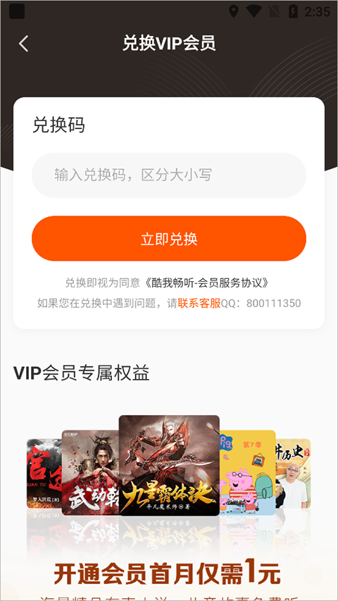 3、进入兑换VIP会员,输入兑换码,点击【立即兑换】。