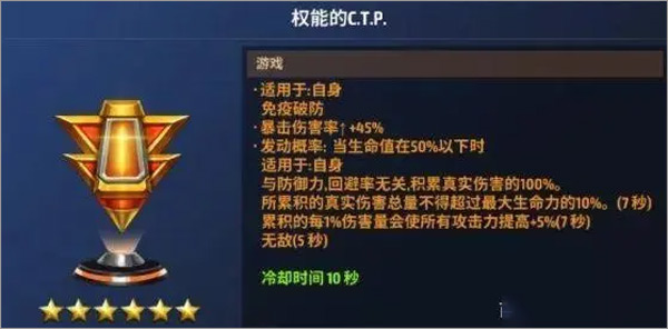 ②愤怒:《复联4》极限灭霸强化类型6、周日吞叔奖励可获取。建议技能持续时间短,释放次数频繁,不容易卡倍伤角色优先使用(二女儿、惊奇队长(PVE)、美队、凤凰(PVE)、奇异博士、海王)。此外,新版本的海王纳摩也推荐使用。