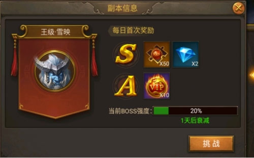 VIP BOSS也是获得等级丹碎片的一个地方。每一个VIP BOSS在S级通关之后都会奖励等级丹碎片。前期装备获取快,战力增加也快的情况下,这也是一个非常好的获得等级丹碎片的方法。