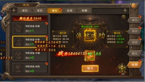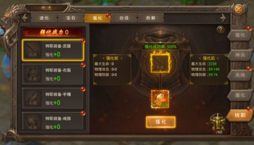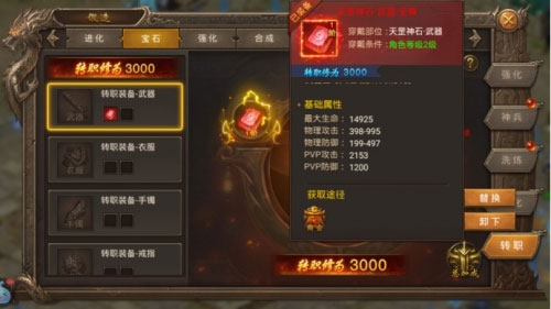 我们可以用转职专属强化道具破空石,对转职装备进行强化。