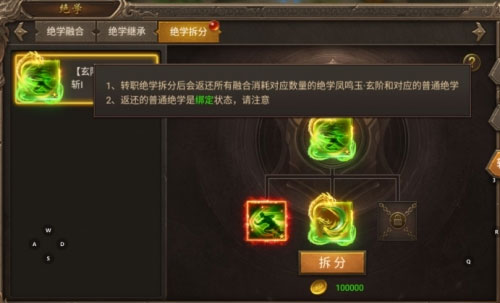 拆分后会返还转职绝学合成的材料及原始绝学。