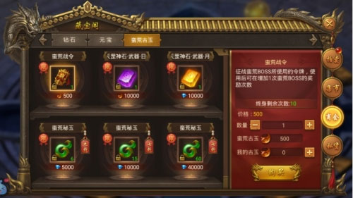 日神石是用莽荒古玉购买,蛮荒古玉可以在打蛮荒BOSS中获得,也可以在商会中使用钻石购买蛮荒秘玉获得蛮荒古玉。月神石需要使用钻石购买。