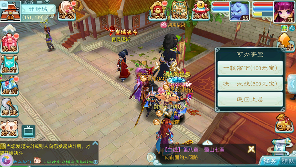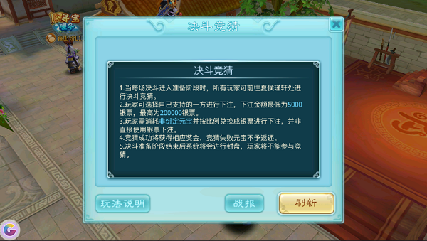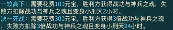 战书分为一较高下(下战书需花费100元宝)和决一死战(下战书需花费300元宝)