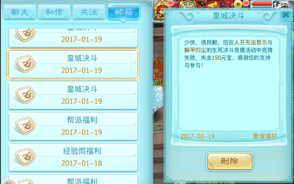 战书下达后,被决斗方可进行接受决斗。1小时内无人应战即自动取消。
