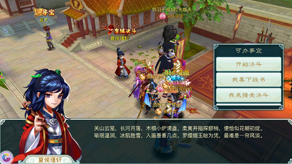 首先需要下战书,战书送出后,对方有一小时的时间接受挑战,超时不接则视为决斗取消,并公告全服。