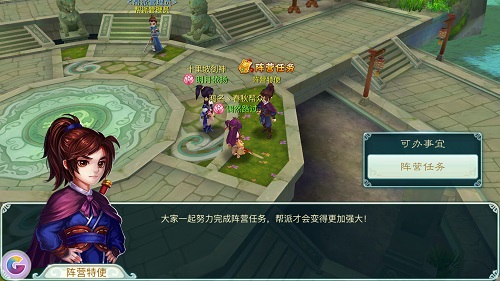 首先回到帮派地图,找到阵营特使领取阵营任务,接取天使残卷任务。