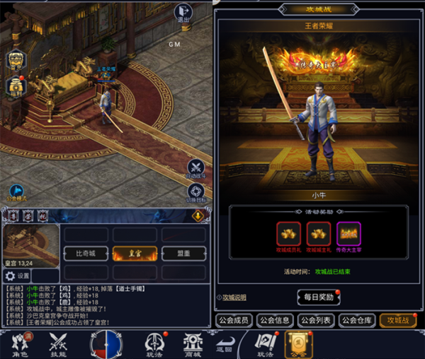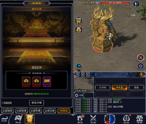 (2)活动常规开启:每周三、周六20:00-20:30,15分钟内摧毁城主雕像可进入皇宫,20:30活动结束时占领皇宫的公会取得攻城胜利;