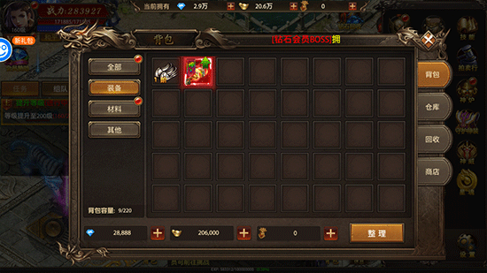 3、探索宝藏,钻石打造,角色热血,激战BOSS等可以获得高级装备;