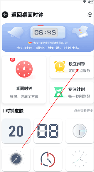 1、下载安装好专注时钟官方版,打开软件主页面点击设置闹钟。
