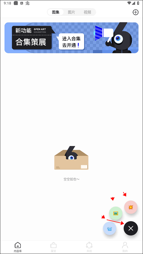 8、如果想单独生成画作的话,你可以点击内容库,然后点击下方的加号、选择3个中的其中任意一个就可以创作