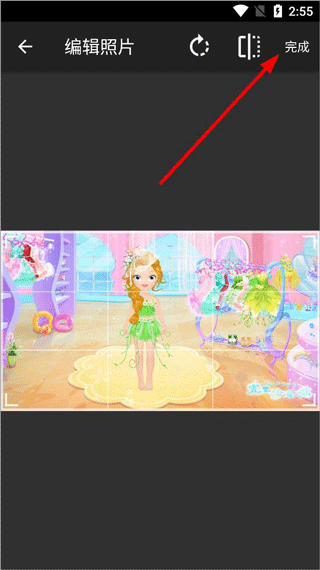 3、打开相册后选中照片,拖动边框进行裁剪,裁剪后点击右上角完成;